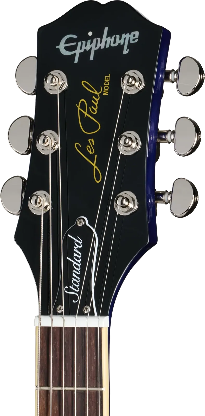 Headstock Inlay: Epiphone Logo in Mother of Pearl, Les Paul Model in Gold Silkscreen