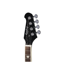 The Epiphone Mandobird is back by popular demand! This is an excellent electric four-string mandolin for all kinds of players, from bluegrass and Western swing mandolin players looking to stretch out and “go electric” to rock guitarists looking to explore new tones and alternate tunings. It features a Reverse Firebird™-inspired solid nato wood body, a bolt-on mahogany neck with trapezoid inlays, a reverse Firebird style headstock with four Grover® Mini Rotomatic® tuners, a top-mounted, string-through-body bridge, and an Epiphone Firebird pickup paired with master volume and tone controls. An Epiphone gig bag is also included.