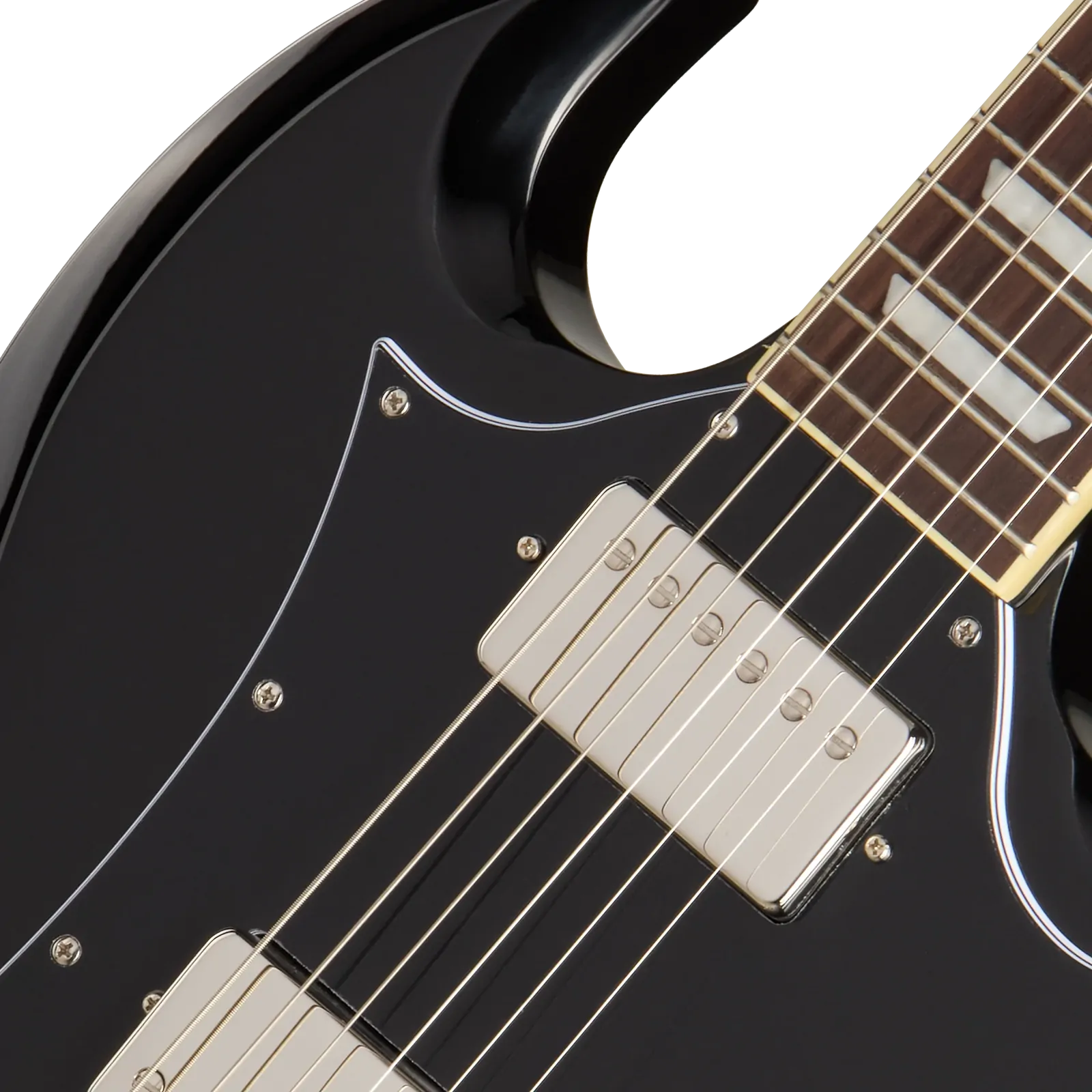The Epiphone SG Standard features a contoured, double-cutaway mahogany body, providing unimpeded access to all 22 frets. The glued-in mahogany neck adds to the model’s renowned sustain. The neck has a fast-playing SlimTaper™ C profile and is capped with a bound rosewood fretboard, equipped with 22 medium jumbo frets, and adorned with pearloid trapezoid inlays. The fretboard’s 12” radius makes playing first-position chords easy while ensuring that string bends don’t fret out when you play them. High-quality Grover® Rotomatic® tuning machines and a Graph Tech™ nut, paired with a fully adjustable Epiphone LockTone™ Tune-O-Matic™ bridge and Stop Bar tailpiece, work together to maintain rock-solid tuning stability and intonation.