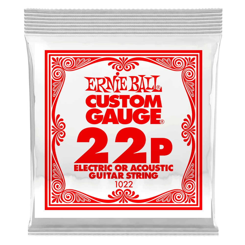 Ernie Ball Plain Steel Electric or Acoustic Guitar Strings are made of specially tempered tin plated high carbon steel used on electric and acoustic guitars. Ernie Ball revolutionized the market by offering Custom-Gauge single string options allowing guitarists to create personalized string sets. Length: 39.5" / Taper: NA