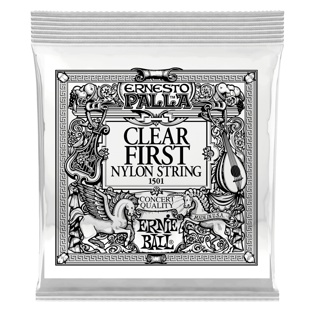 Ernie Ball Ernesto Palla Clear Nylon Classical Guitar Strings are made of a solid clear nylon monofilament. Nylon produces rich pure treble tones with percussive attack. .028 gauge