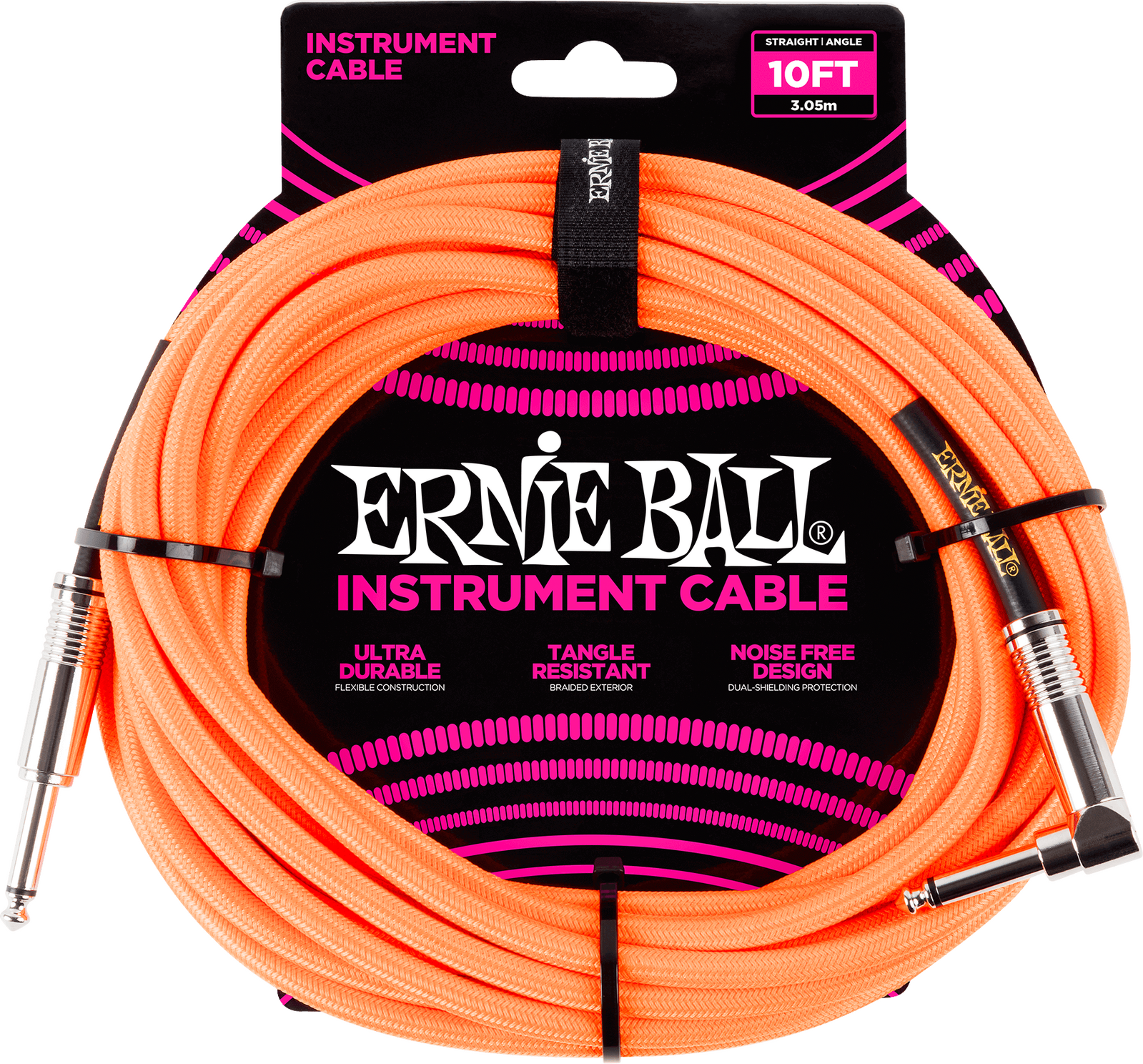 Ernie Ball Braided Instrument Cable Straight/Angle 10ft Neon Orange