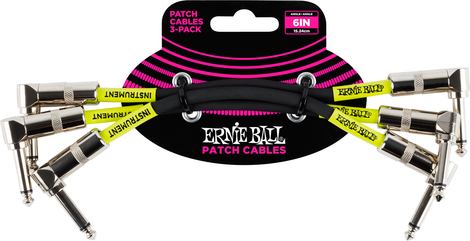 Ernie Ball Classic Patch Cable Angle/Angle 6" Black 3 Pack