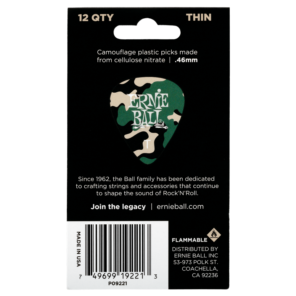 Ernie Ball Thin Camouflage Picks 12 Pack