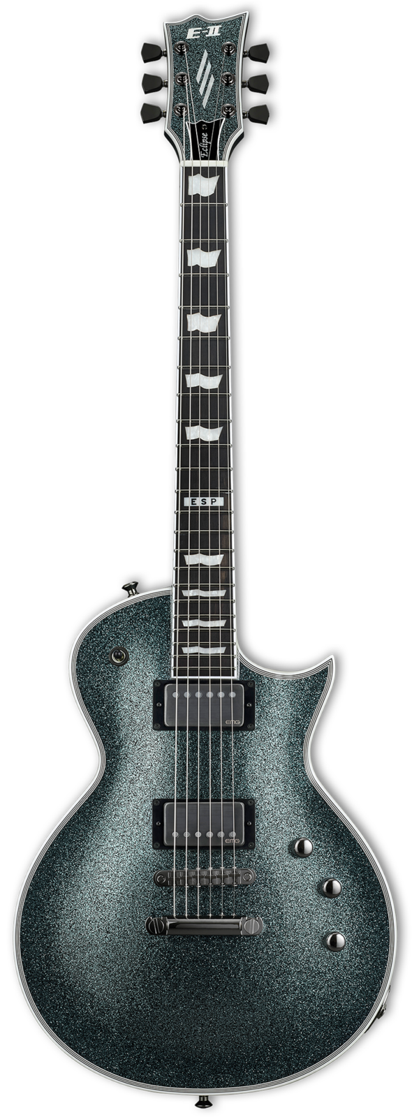 Formerly called “ESP Standard”, all ESP E-II instruments are created at our ESP factory in Tokyo, Japan, and are designed for professional players who accept no compromises in tone, feel, or reliability for their guitars and basses. The E-II Eclipse DB offers the sublime look of an outstanding Granite Sparkle finish with prominent white binding on the both sides of the body as well as the neck and headstock. This guitar features set-neck construction of its maple-capped mahogany body and thin U-shaped mahogany neck with ebony fingerboard (and satin finish on the back of the neck for extra smooth playing feel). Next, add high-end components like a bone nut, Dunlop locking strap buttons, Gotoh locking tuners, and a Gotoh TOM bridge and tailpiece. Then get the sound you want from a set of EMG 66TW (neck) and EMG 57TW (bridge) active pickups, with coil spitting available on each pickup via push-pull controls. Ready for serious professional use on stage or in the studio, the E-II Eclipse DB includes an ESP hardshell form-fitting case.