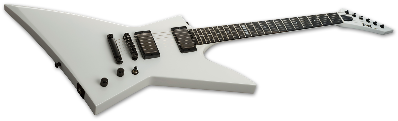Formerly called “ESP Standard”, all ESP E-II instruments are created at our ESP factory in Tokyo, Japan, and are designed for professional players who accept no compromises in tone, feel, or reliability for their guitars and basses. The E-II EX NT is a killer guitar with a bold and angular design for musicians who like to make a statement from the moment they pull their guitar from the case. Available in Black and Snow White finishes, it features set-thru construction of a mahogany body and mahogany neck with ebony fingerboard, 22 extra-jumbo frets, and a satin finish on the back for super smooth playability. The E-II EX NT includes premier-quality components like a bone nut, Gotoh locking tuners, a Gotoh TOM bridge and tailpiece, and Dunlop locking strap buttons, along with a set of EMG 60 and EMG 81 pickups in Brushed Black Chrome. Includes an ESP hardshell form-fitting case.