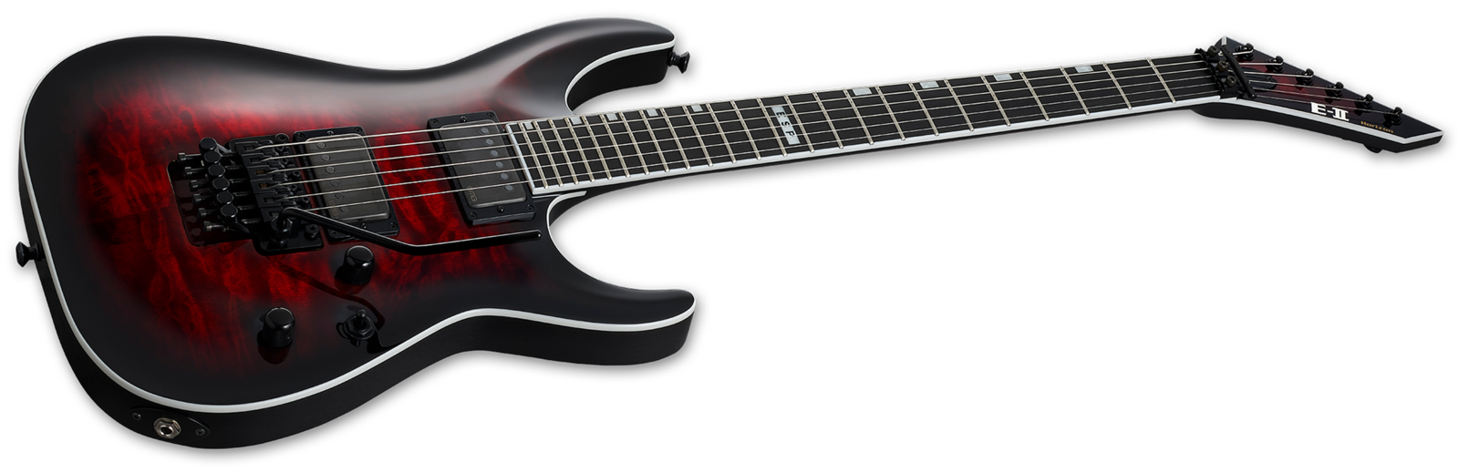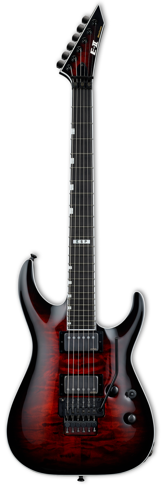 Available in classy See Thru Black Cherry Sunburst and Tiger Eye Sunburst finishes, the E-II Horizon FR-II is a guitar designed to handle literally any kind of music with serious professional results for recording and live performance. Formerly called “ESP Standard”, all ESP E-II instruments are created at our ESP factory in Tokyo, Japan, and are designed for professional players who accept no compromises in tone, feel, or reliability for their guitars and basses. The E-II Horizon FR-II offers neck-thru-body construction with a mahogany body and arched quilted maple top, and a three-piece maple neck that features an ebony fingerboard with 24 extra-jumbo frets and offset block inlays, and a satin finish on the back for super smooth playability. This guitar offers high-end components that include a Floyd Rose Original bridge, Gotoh locking tuners, and Dunlop locking strap buttons. Pickups on the E-II Horizon FR-II are EMG 66TW (neck) and EMG 57TW (bridge), both with Brushed Black Chrome covers and coil splitting with push-pull controls. Includes an ESP hardshell form-fitting case.