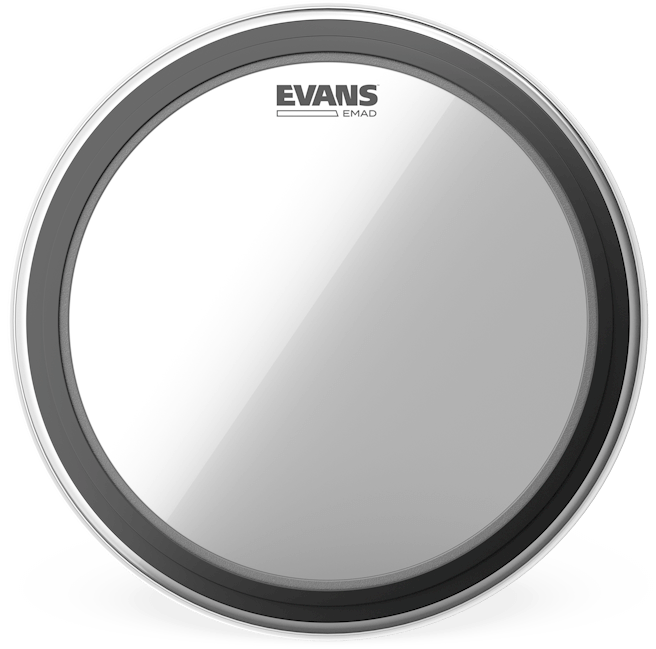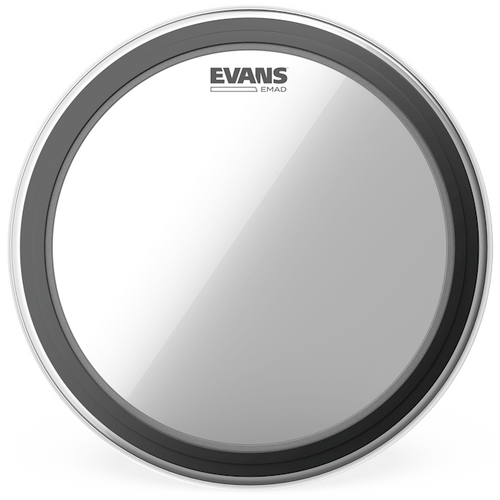 EVANS EMAD Clear bass drumhead is made with a single ply of 10mil film, and features EMAD, the unparalleled industry standard in drum tone customization.