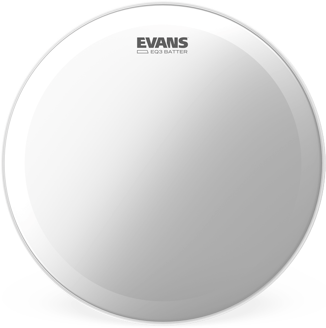 EVANS EQ3 Frosted bass head is made with two plies of 6.5mil film and an internal overtone control ring.