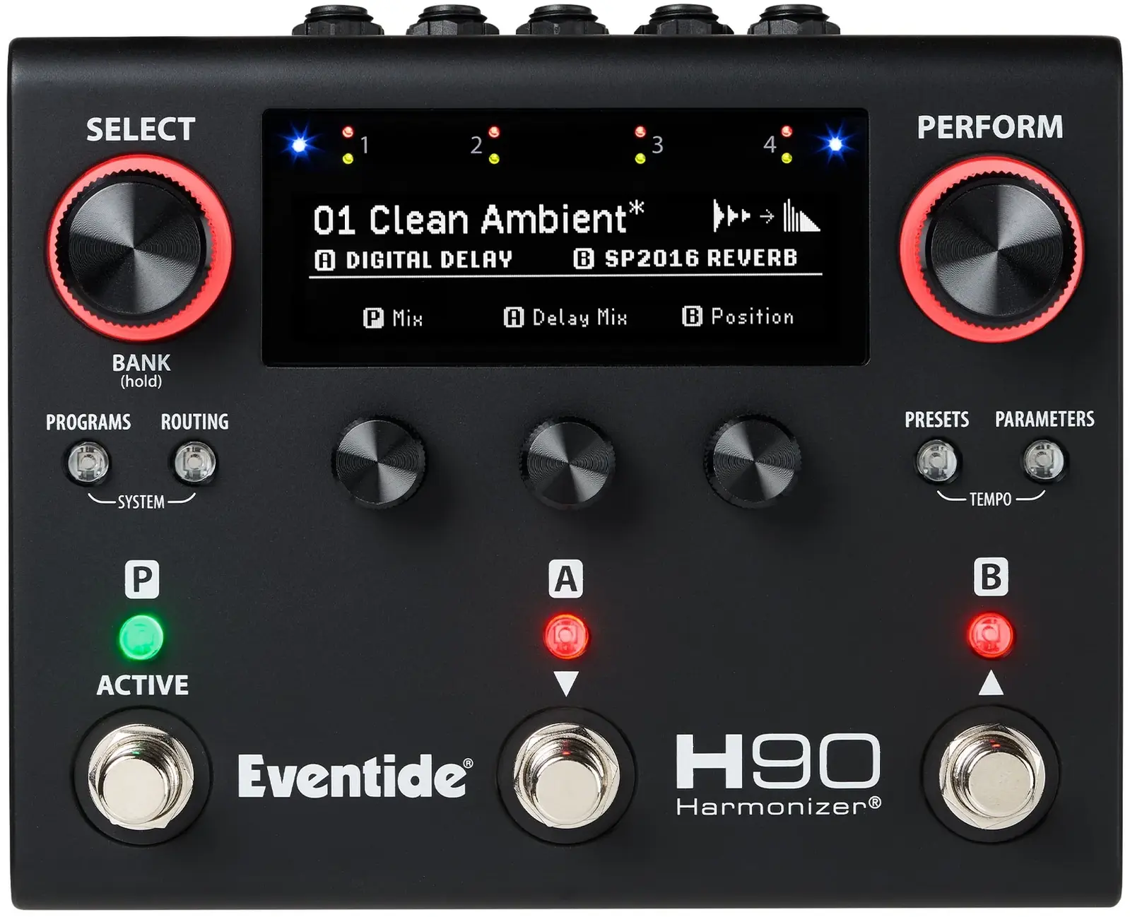 The H90 Harmonizer is a live performance powerhouse! The front panel has been reimagined with five push knobs, seven LED buttons, and a hi-res OLED display for greater hands-on control and parameter feedback.