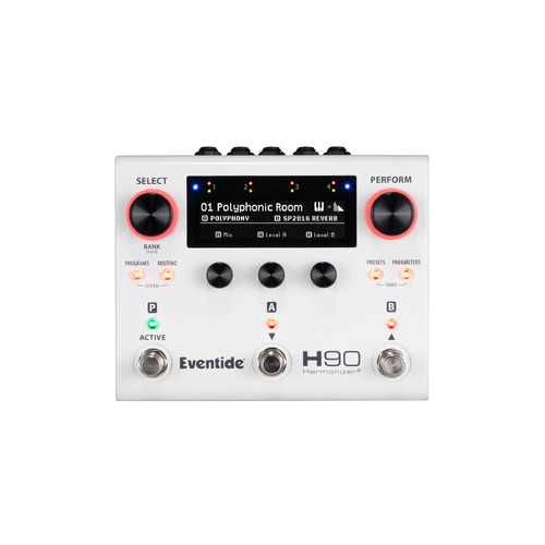 Discover why top artists and producers have chosen Eventide for over 50 years with the H90 Harmonizer®, Eventide’s next-generation multi-effects pedal. Whether you want high-quality bread-and-butter effects or experimental sounds unheard, the H90 has everything you need to inspire your creativity with an intuitive UI designed with players in mind, 63 effect algorithms, and hundreds of Program combinations curated for a variety of instruments and genres. With its comprehensive I/O and flexible routing options, the H90 is designed to be the heart of your rig.