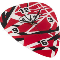 This pick-shaped wall clock from EVH® makes a cool addition to any musician's decor. Featuring the iconic red, black, and white stripe pattern that defined an era of rock history, this timepiece brings legendary style to your music room, studio, or living space.