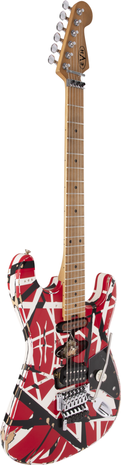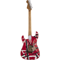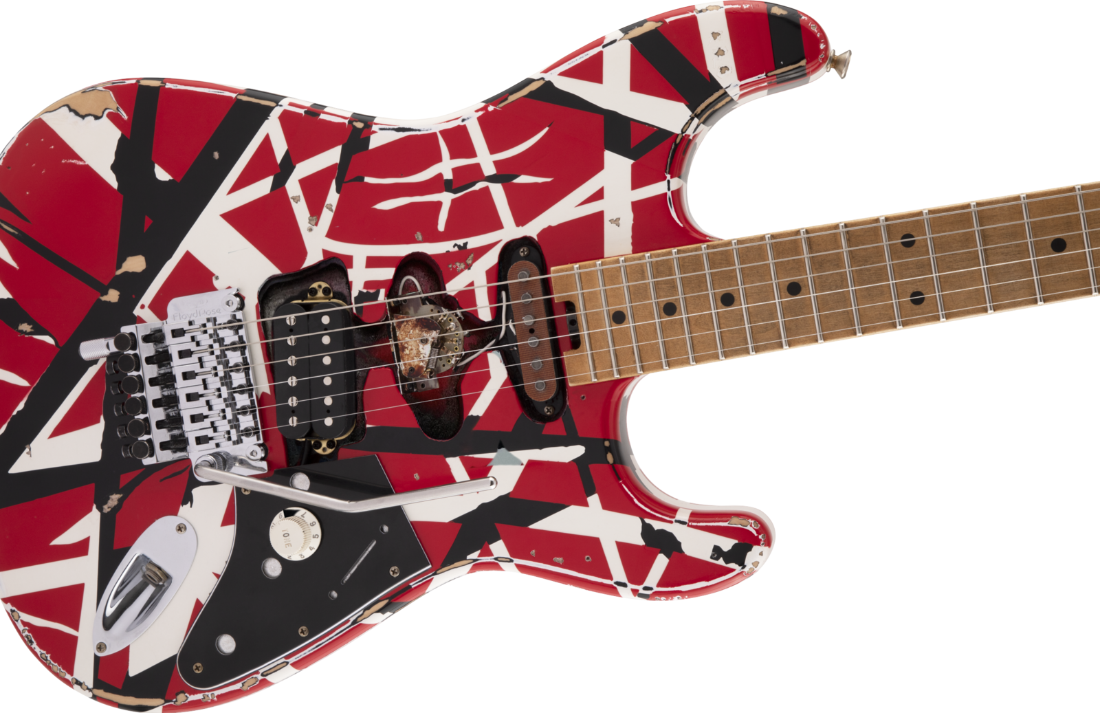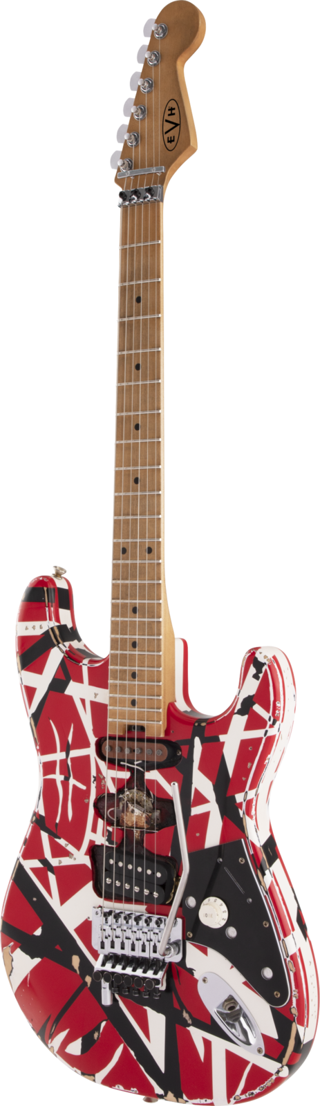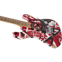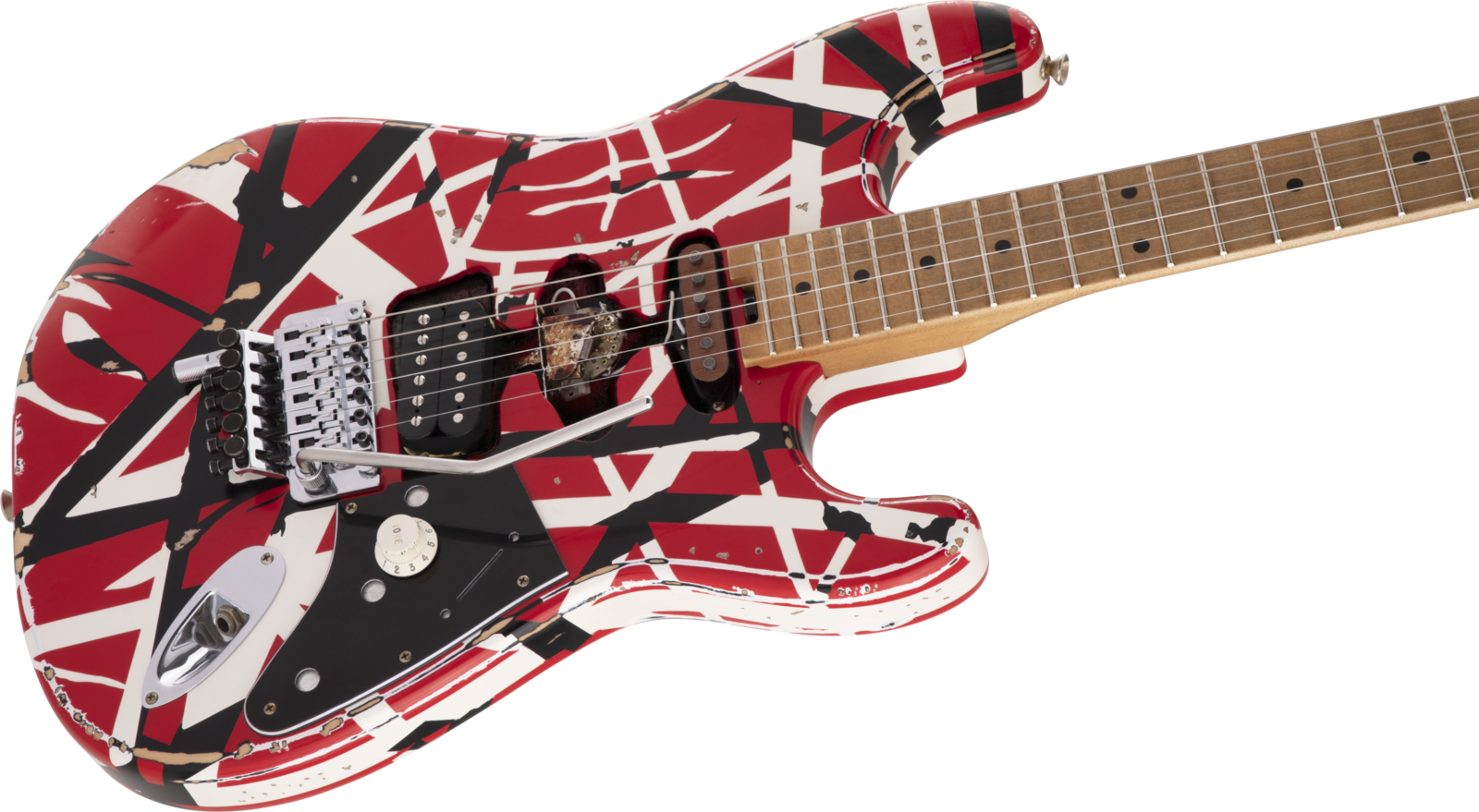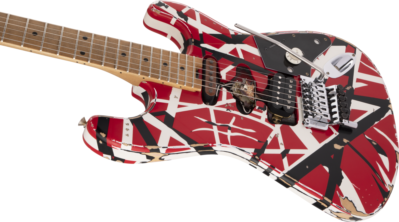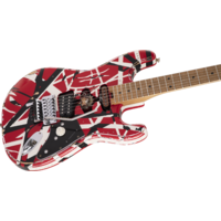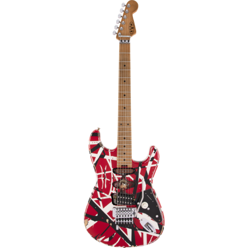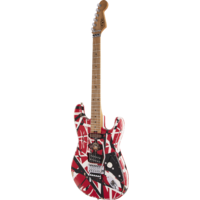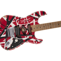 Sporting Eddie’s famed red with white-and-black-striped paint job and a worn-in reliced look, the all-new Frankie features a basswood Stratocaster-style body paired to a graphite-reinforced quartersawn maple neck. An oiled finish on the back of the neck allows for hours of playing comfort, while the 12”-16” compound radius maple fingerboard with 22 jumbo frets was designed for fast and furious playing styles.