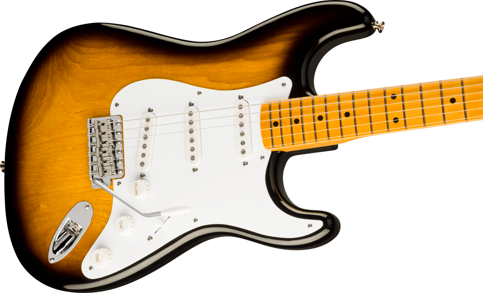 The 7.25”-radius fingerboard and vintage frets provide the comfortable playing feel of a cherished fifties Stratocaster.