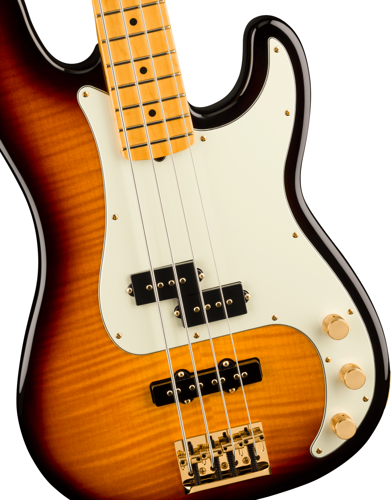 Premium gold hardware delivers both striking visual appeal, elevating the modern sophistication of the 75th Anniversary American Professional PJ Bass.