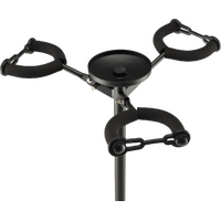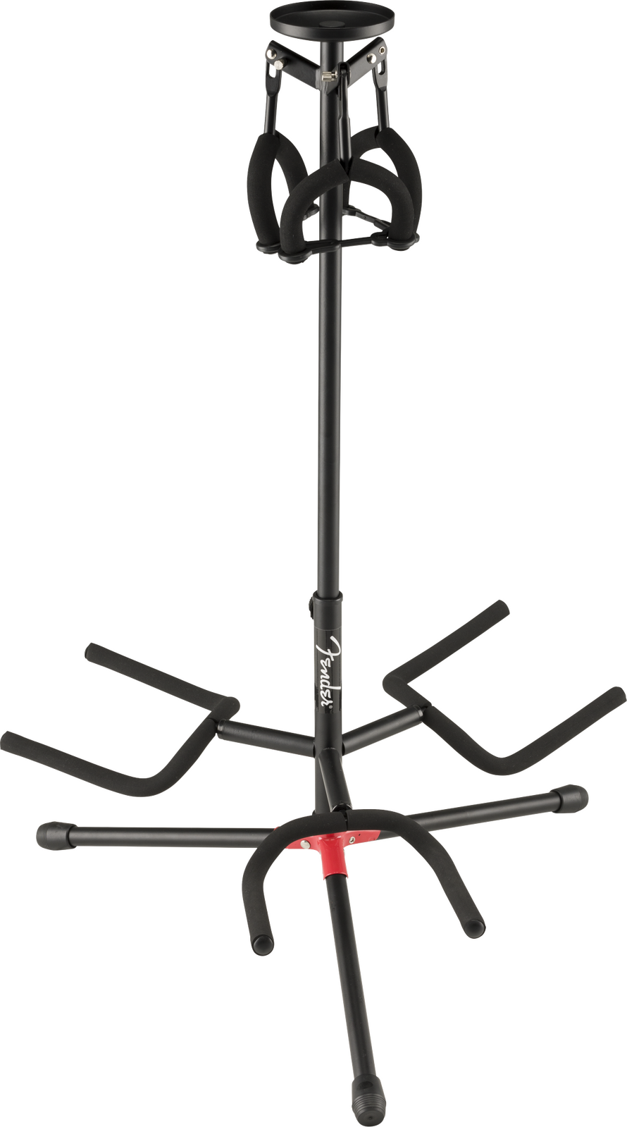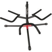 Fender's Adjustable Cradle Guitar Stand conveniently showcases your acoustic, electric or bass guitar. The height-adjustable neck yoke comfortably accepts various instrument sizes while the lower support swivels to accommodate standard and offset body styles. This stand’s metal construction is durable enough for road use, and padded yokes offer security while in use. Perfect for the musician on the go, this stand is easily collapsible for convenient transport.