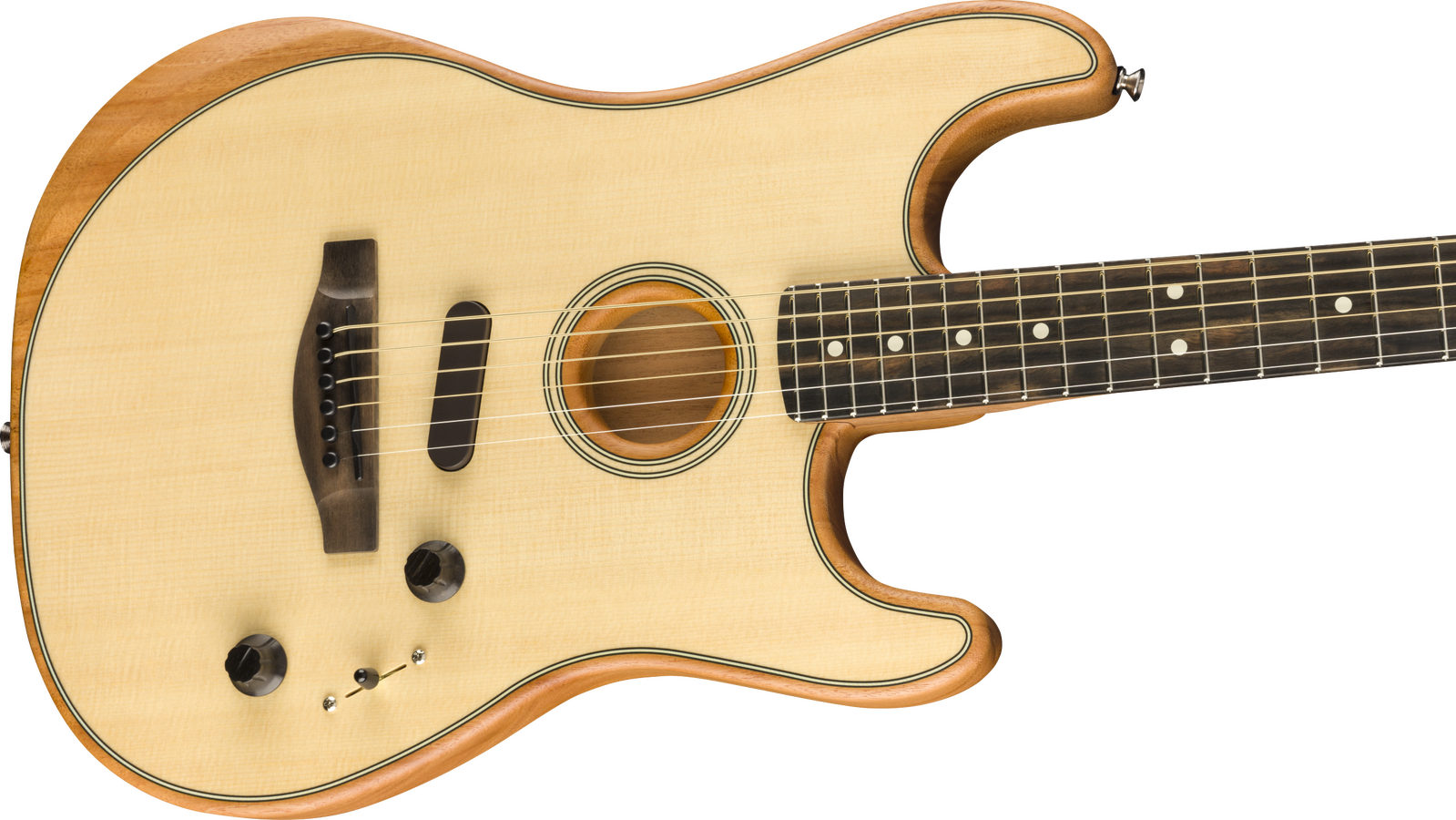 The American Acoustasonic® Stratocaster® continues to embody the spirit of purposeful innovation that drives Fender guitars. The power of the Fender and Fishman®-designed Acoustic Engine is sure to deliver true inspiration. From acoustic shapeshifting to electric rhythm tones, this extremely versatile guitar creates a brand-new lane on the sonic highway.
