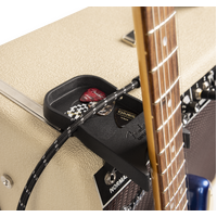 The Amperstand™ Guitar Cradle transforms any amplifier or tabletop into the perfect place to set your guitar down without fear that it will fall. The bottom of the Amperstand Cradle is covered in a micro-suction material that will safely grip just about any surface, including amplifier tolex, creating a secure seal that will hold the cradle in place to give you peace of mind. The Amperstand Cradle also provides a classic Fender “ashtray” to conveniently hold small items like picks and a capo – or your favorite beverage. The two grooves on the sides will hold your guitar cable in place.
