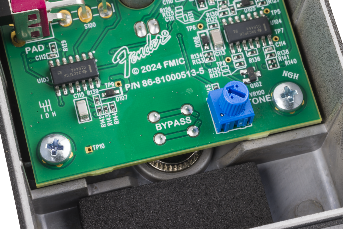 Open the back cover to reveal an internal tone knob for finetuning high frequencies of the fuzz signal.