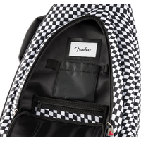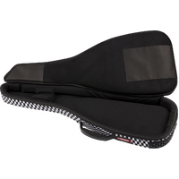 Fender's F620 Series gig bag is a stylish and secure way to keep your electric guitar safe while traveling. Featuring the iconic asymmetrical Fender shape, its durable outer layer is constructed of tough 600 Denier polyester that protects against impacts while avoiding ripping and tearing. Its interior is filled with 20mm padding lined with soft touch microfiber that keeps your instrument secure while preventing finish damage. It even comes with strap button protection, a protective neck rest and exterior bumpers to minimize any strain on the instrument while in transit. The F620 gig bag also comes with a super-padded handle and ergonomic air mesh backpack straps with easily adjustable ladder lock buckles, so you can comfortably carry your instrument without unnecessary physical strain.