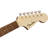 Crafted with an X-braced solid spruce top and sapele back and sides, the compact parlor-sized body of the Malibu Player produces a sweet, articulate voice that encourages players to reach for new chords and melodies. The nato neck is designed with an easy-to-play slim "C"-shaped profile, a short 24" scale length, and a tilt-back 6-in-line headstock for a distinctive look born from Fender's electric guitar DNA. Other notable details include vintage-style tuning machines for smooth, accurate tuning, a GraphTech® NuBone® nut and saddle for detailed harmonic character. With elegantly integrated controls for a sleek, modern look, the onboard Fishman® Flex preamp system allows faithful reproduction of the guitar's natural sound when plugged into an amplifier or recording device.