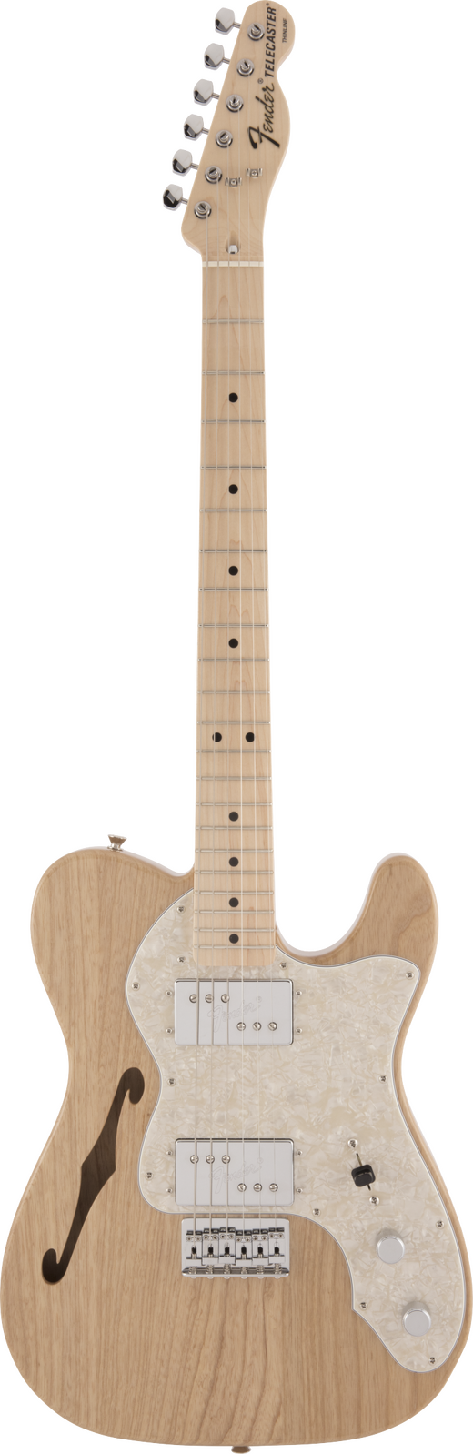 Made in Japan Traditional series derived by combining the aesthetics of traditional Fender musical instrument production with the sophisticated craftsmanship of Japan. Fender's orthodox DNA is revived with reliable Made in Japan quality. Made in Japan Traditional 70s Telecaster® Thinline has a gloss finish ash body. A 9.5-inch radius "U" shaped maple neck with 21 vintage-style frets provides a classic performance that is unique to the Traditional series. The 6-saddle String-Through-Body hardtail bridge, and the original pickups selected for the Traditional series, produce realistic, musical vintage tones. The narrowly designed nut width makes it easy for Japanese players to play. Solid guitar craftsmanship and flexible answers to player needs are reflected in this series.