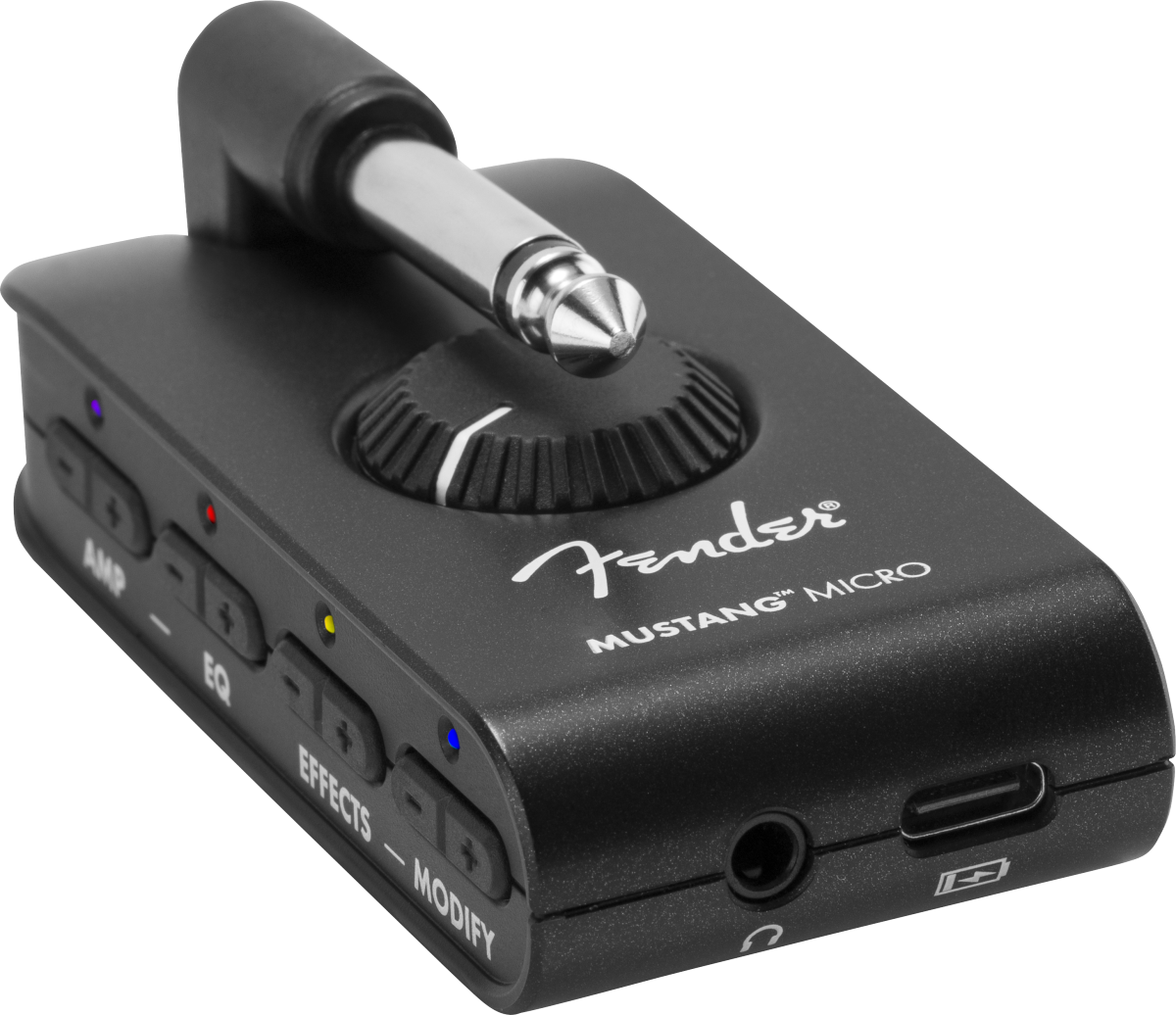 Mustang Micro is a complete personal guitar amplifier featuring a wide selection of tones from the wildly popular Mustang series amps. Plug Mustang Micro directly into your guitar, connect your favorite wired headphones, and choose your perfect amp and effect settings. It’s ideal for any player from beginner to pro, making it quick and easy to get great tones when jamming at home or on the go. Mustang Micro’s 1/8” stereo headphone out allows the flexibility to use your favorite wired headphones or earbuds and silently play with a responsive touch and feel without annoying latency. Want to jam along with tunes from your music library or favorite streaming service? Mustang Micro supports Bluetooth audio streaming from your mobile device, tablet or computer to Mustang Micro and features automatic Audio/Visual sync, making it a great tool for practicing and learning songs. And you can even record your favorite guitar tones and the Bluetooth audio stream simultaneously using Mustang Micro’s USB-C output. It’s the ultimate guitar karaoke machine!
