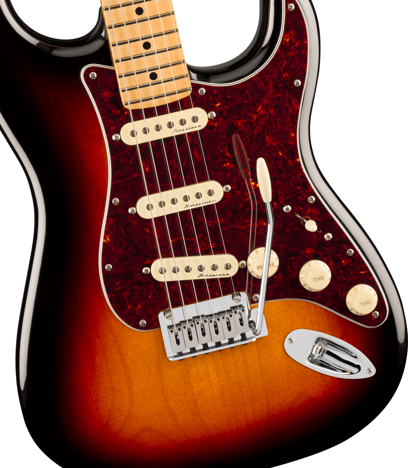 The Player II Modified Stratocaster® is a classic guitar with the modern player in mind. Everything about the neck is designed for fast and fluid playability, from the Modern “C”-profile with silky satin urethane finish on the back to the comfy 9.5”-radius slab rosewood or 1-piece maple fingerboard with smooth rolled edges and 22 medium jumbo frets. The alder body provides classic Fender punch and is available in a variety of exciting new finishes. The Player II noiseless™ pickups deliver classic Strat® chime and sparkle while eliminating unwanted noise and the push/pull switch on the 2nd tone control provides even more tonal flexibility by adding the neck pickup into switch positions 1 and 2. The 2-point tremolo, short post locking tuners, TUSQ® nut and modern string tree all combine to keep tuning incredibly stable, while the wider travel of the chamfered tremolo block allows players to coax even more expressive, musical vibrato from their instrument.