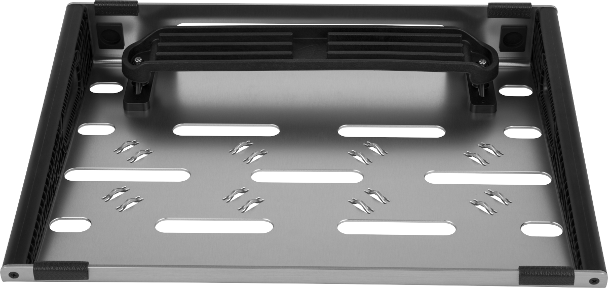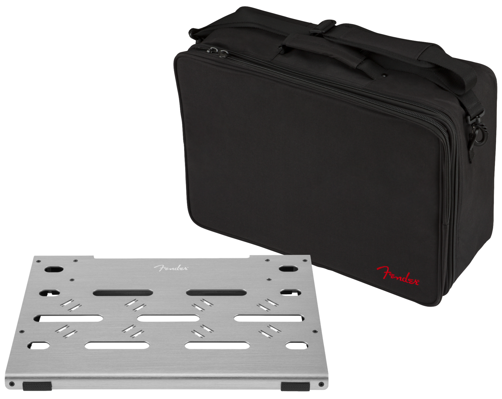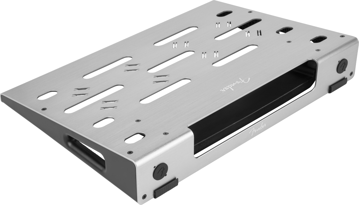 Surprisingly simple and remarkably versatile – the Fender® Professional Pedal Board delivers world-class performance and utility. The low-profile precision-machined anodized-aluminum chassis is lightweight and strong enough to stand up to the rigors of the road, while the thoughtfully designed cable routing and management system allows you to keep things neat and tidy, even if your board is overflowing with pedals. Under the hood, a universal mounting bracket fits most popular pedal power-supplies – and is a perfect match for the Fender Engine Room series. The included soft case with storage pocket and cable ties will keep your pedals and accessories safe on the way to the gig, studio or any other destination.