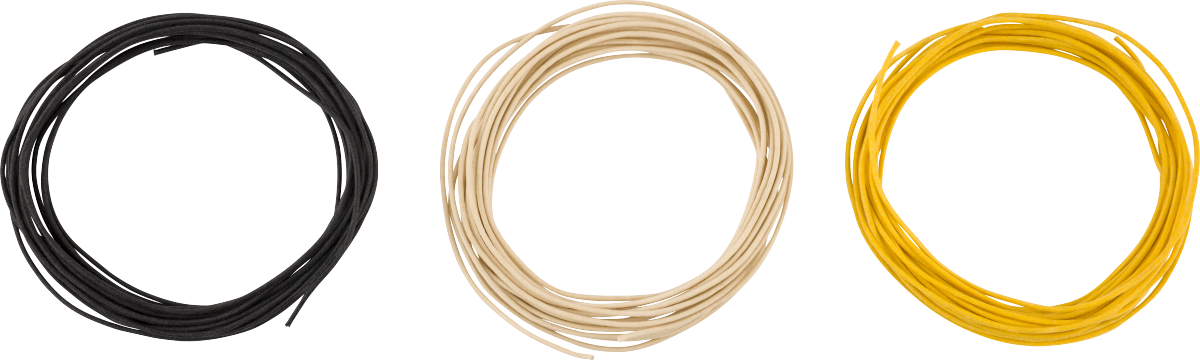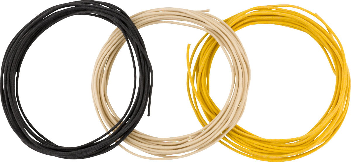 Upgrade your guitar or amplifier with the authentic cloth-covered wire used by Fender® since the early 1950s. Made in the USA by Fender's original wire supplier, the Fender Pure Vintage 22 AWG wire features push-back cloth construction for easy installation and pre-tinned copper strands for reliable soldering. Each package includes an equal amount of black, white, and yellow wire with period-correct waxed cotton outer braid and celanese inner braid - the same specifications found in classic and current Fender instruments and amplifiers.