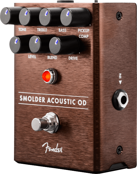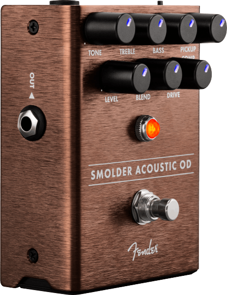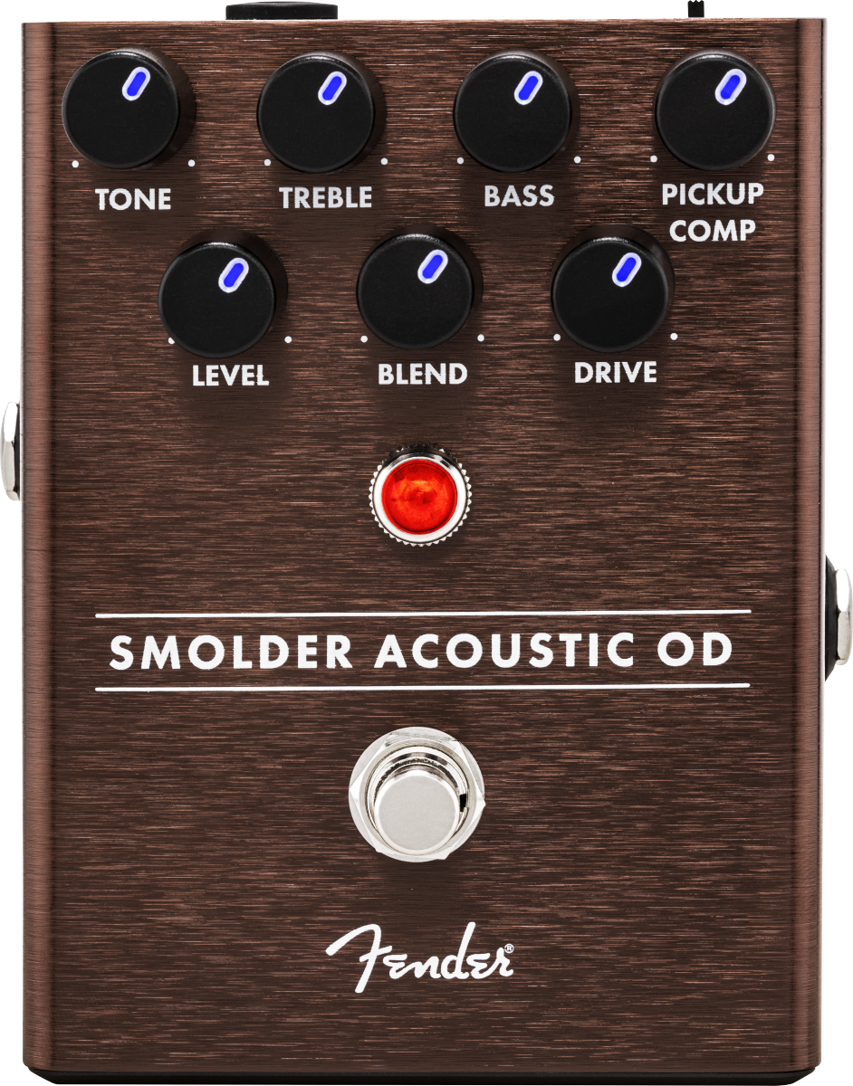 It’s tough to add overdrive to acoustic guitars—not only can it sound un-musical, it can also cause tone-destroying feedback. Designed specifically for use with acoustic instruments, the all-analog Smolder® Acoustic Overdrive elegantly solves these issues with Fender know-how. To soften the bright attack of a piezo pickup we included a Pickup Compensation control that smooths out the highs. The Drive knob controls the amount of distortion, while 3-band EQ and Filter controls let you shape your sound to taste. We even included cabinet simulation to add some flavor when plugged into a full-range acoustic amp or PA.