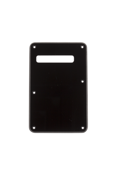 Modern single-ply Stratocaster tremolo backplate with single large string slot.
