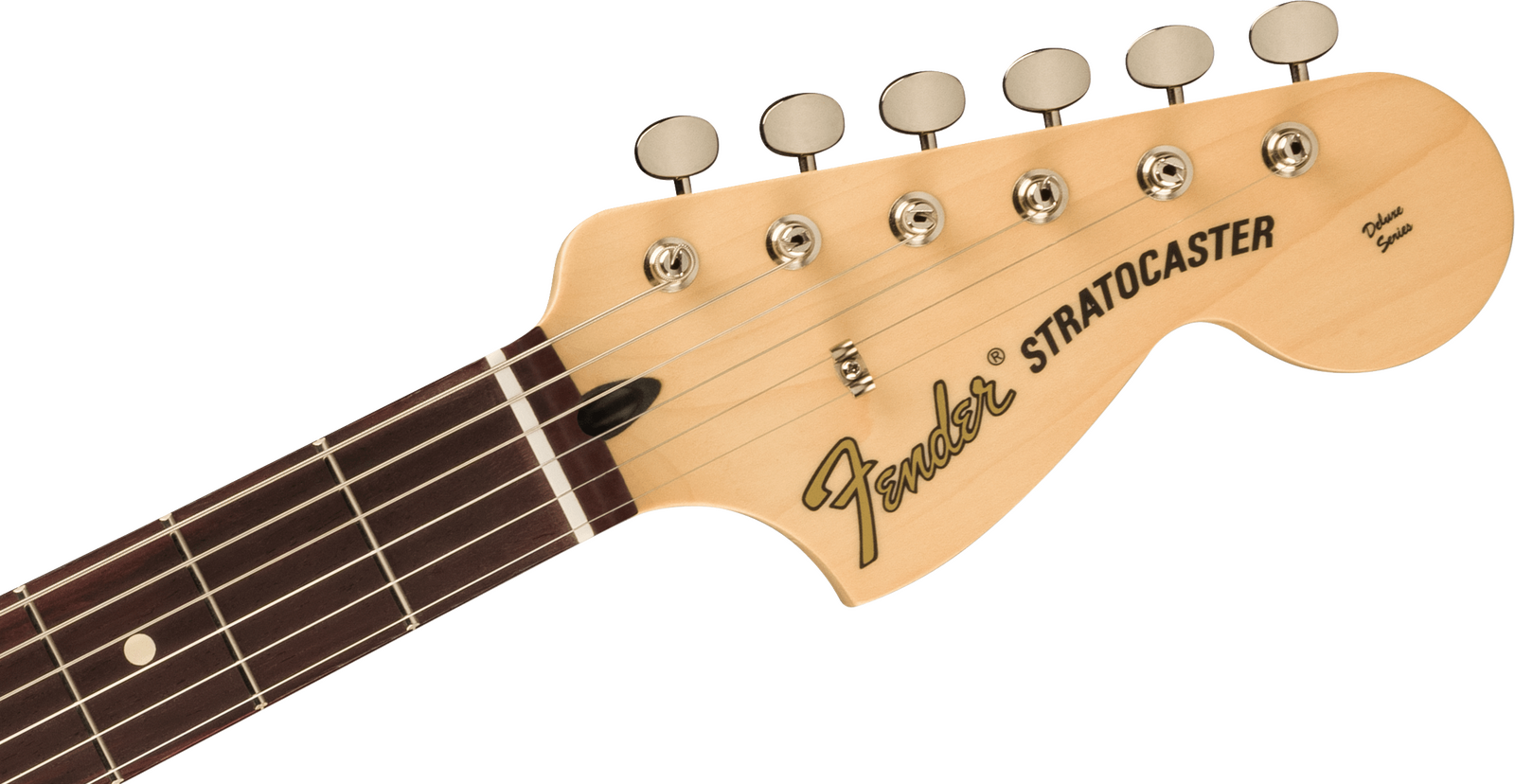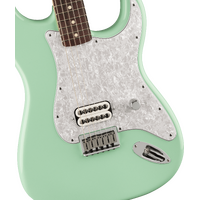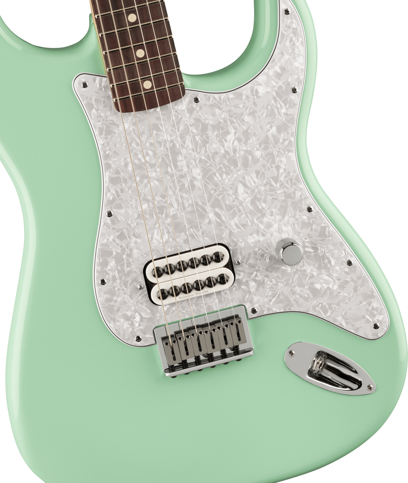 The Tom DeLonge Stratocaster boasts a Seymour Duncan® Invader™ humbucker for immense output and turbo-charged tone that’s perfect for chunky power chords and crunchy riffs. But it's not all about power—the streamlined control setup consisting of a single master volume combined with a treble bleed circuit preserves the guitar’s natural high-end, ensuring sparkly cleans and chime-y edge-of-breakup tones. The comfy modern "C" neck features medium jumbo frets on a 9.5" radius rosewood fingerboard for a modern feel with superior playability. Other highlights include vintage-style tuners and hardtail Stratocaster bridge with block saddles for classic looks, superior intonation and enhanced tuning stability. A custom crafted Tom DeLonge neck plate is decorated with DeLonge's original artwork.
