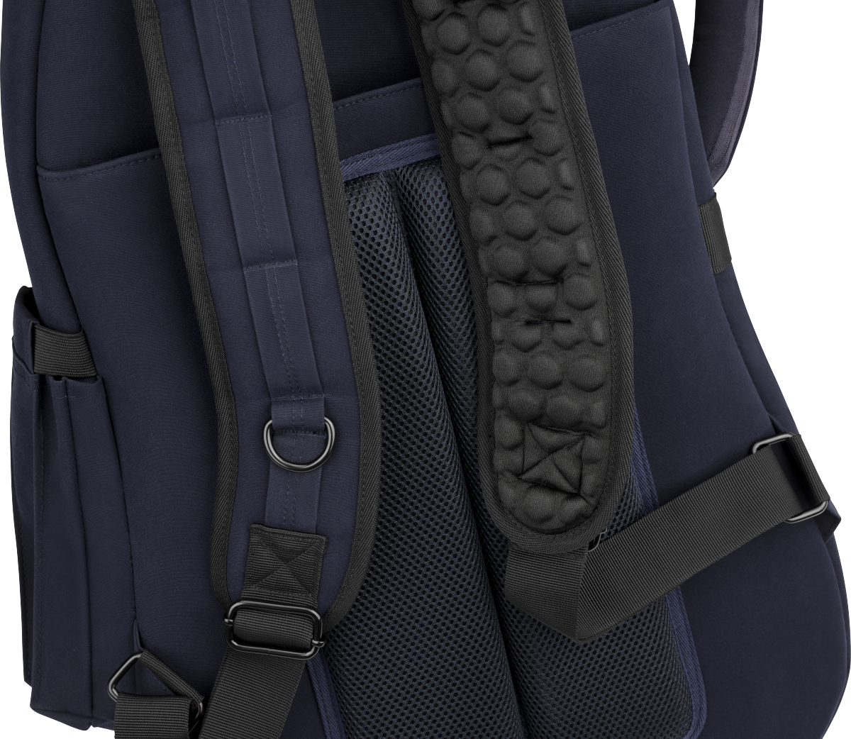 Fixed, shock-absorbing EVA padded backpack straps with adjustable ladder lock buckles for a secure and comfortable fit