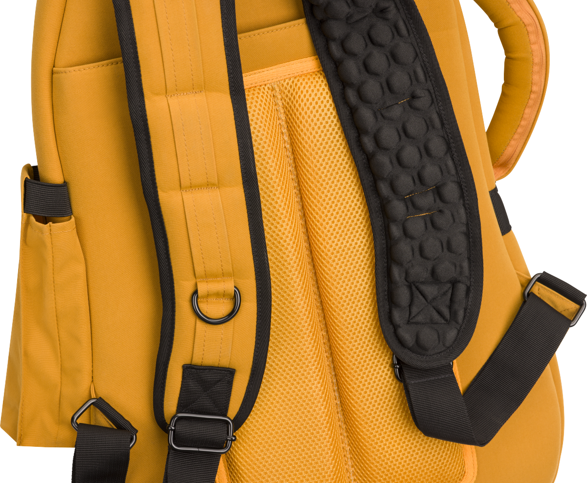 Fixed, shock-absorbing EVA padded backpack straps with adjustable ladder lock buckles for a secure and comfortable fit