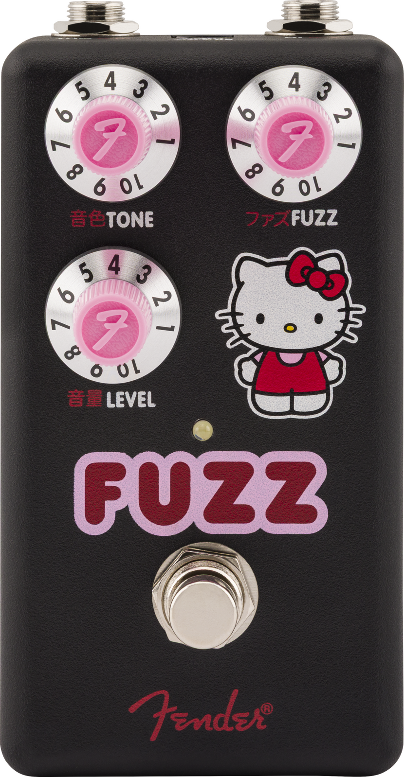 A fun-loving fuzz like no other – the Fender® x Hello Kitty® Fuzz introduces a pop of color and charm to one of the pedal world’s most formative effects. Sporting an op amp-based circuit with three simple controls, this pink-clad pedal kicks your guitar into wooly, splattering gain tones with unmistakable character. Use the fuzz knob to cover a wide range of flavors from overdrive-like grit to full on ripping fuzz. Added style points come in the form of a stand-out black finish, pink Fender witch hat knobs, Japanese translated labels and, of course, Hello Kitty herself making an appearance on the front panel. Steal the spotlight with a unique tone and make new friends as they peep your pedal board to catch a look at this one-of-a-kind fuzz pedal.