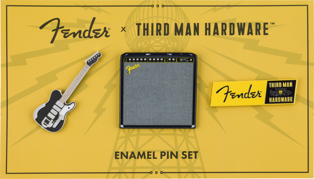 Pins include: Jack White Triplecaseter™ Telecaster® Guitar, Pano Verb™ Amp, and Fender® X Thirdman™ Logo Pin