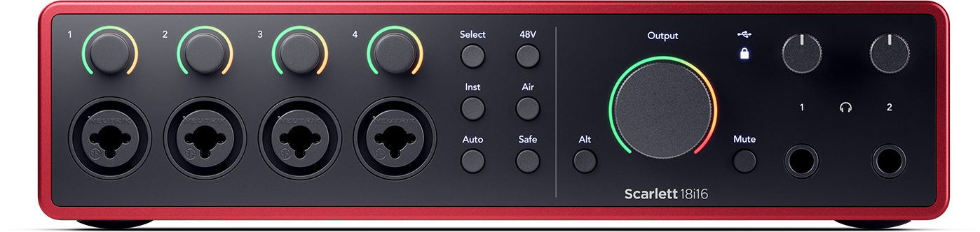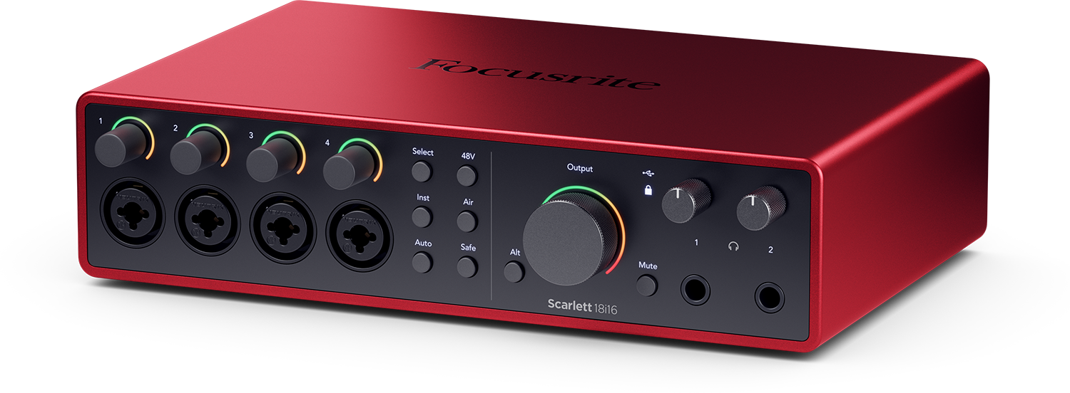 Introducing Scarlett 18i16, the industry-leading USB audio interface for producers, with converters taken from Focusrite’s flagship RedNet range. 18i16 features 18 inputs and 16 outputs, including four microphone preamps, Hi-Z and line inputs, ADAT, SPDIF, and MIDI connectivity.