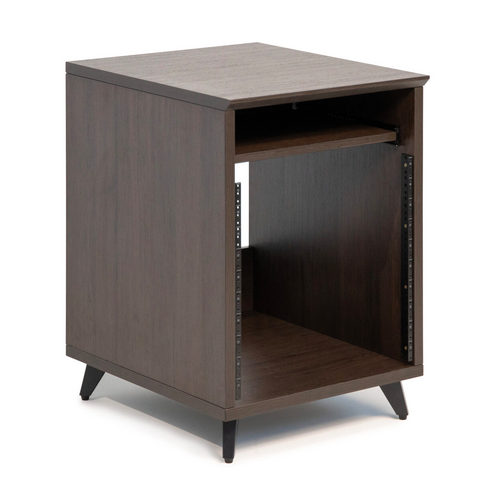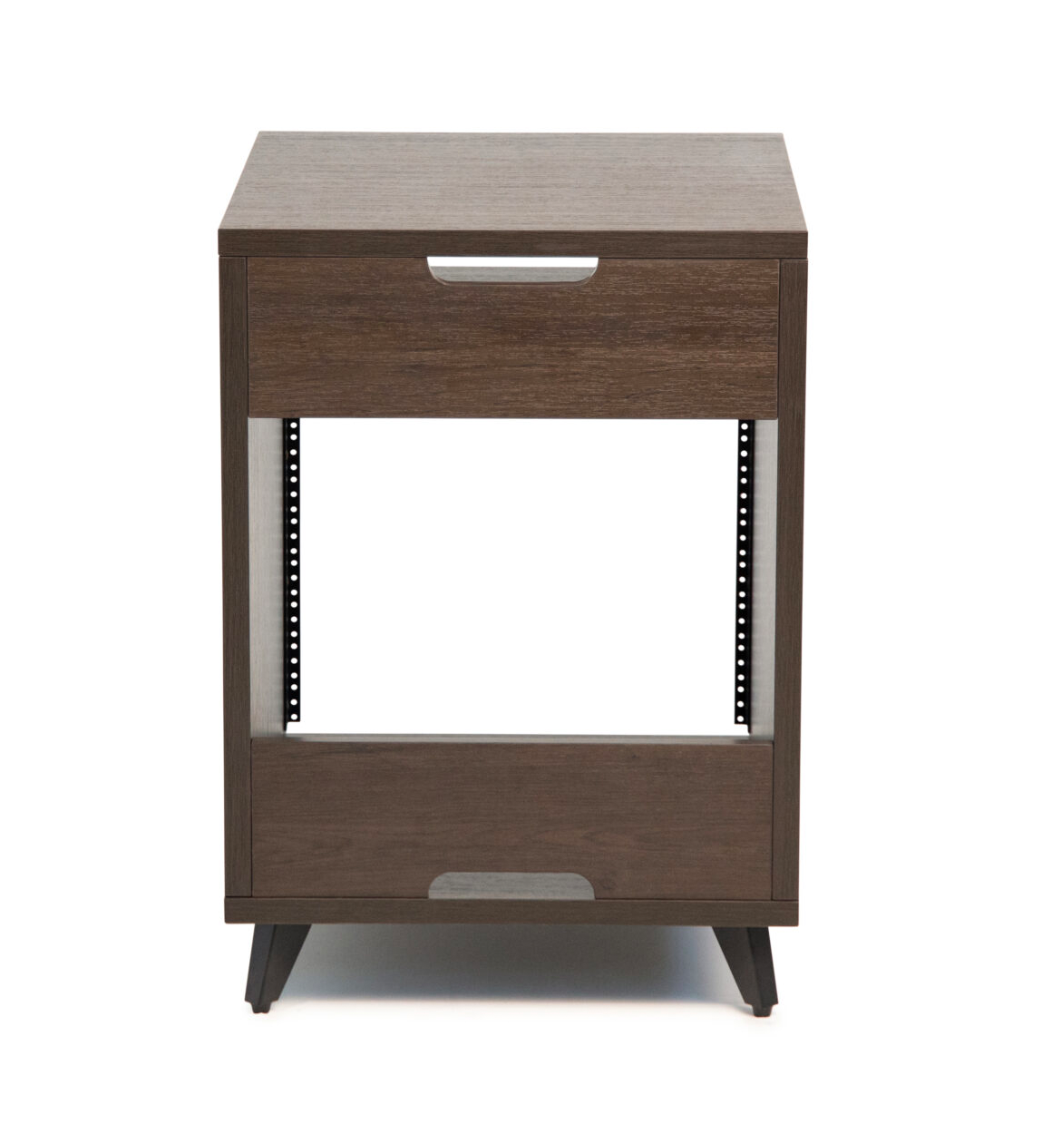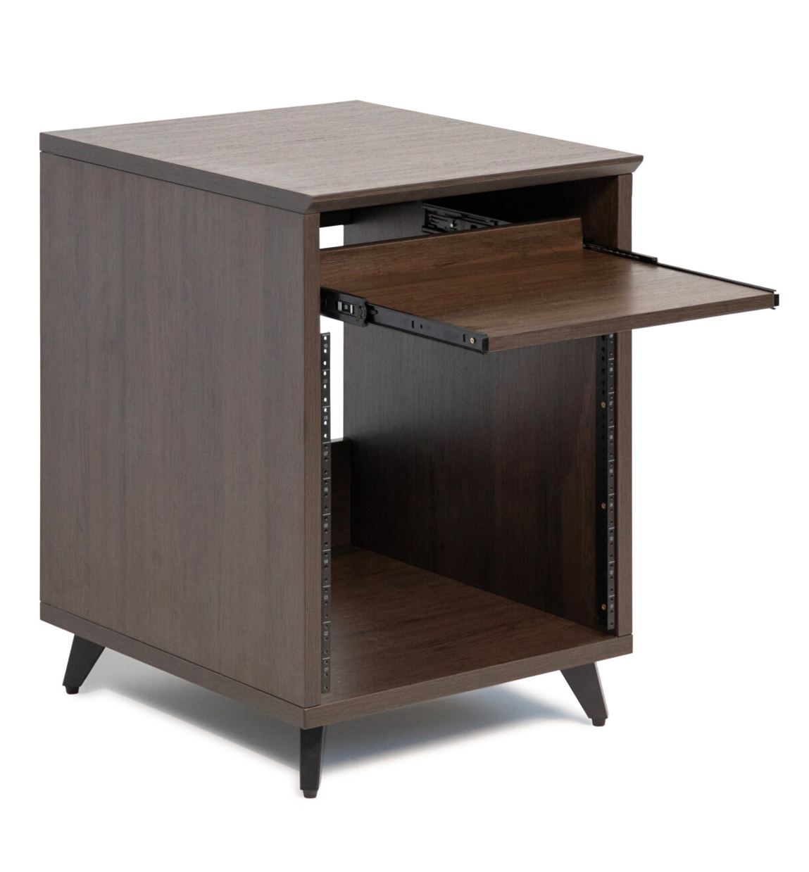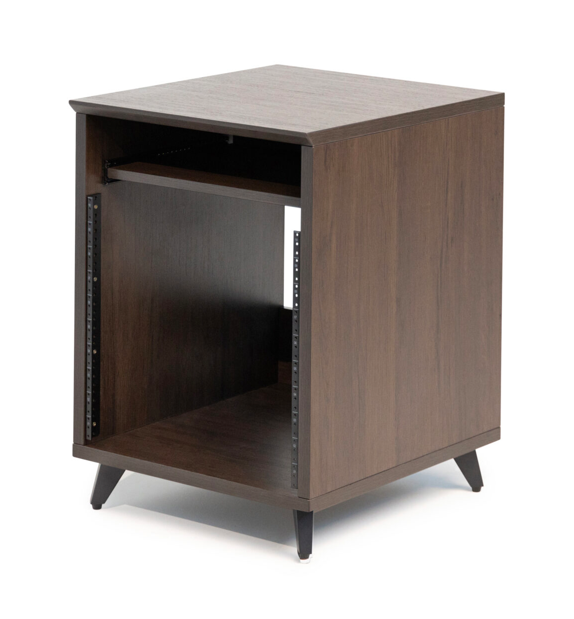 The Elite series has a luxurious feel with beautiful wood grains, innovative design elements such as cable management, pull out trays, rack space, and a raised shelf that keeps your monitors at optimal listening level.