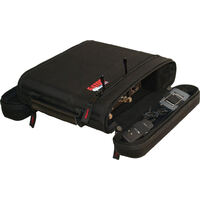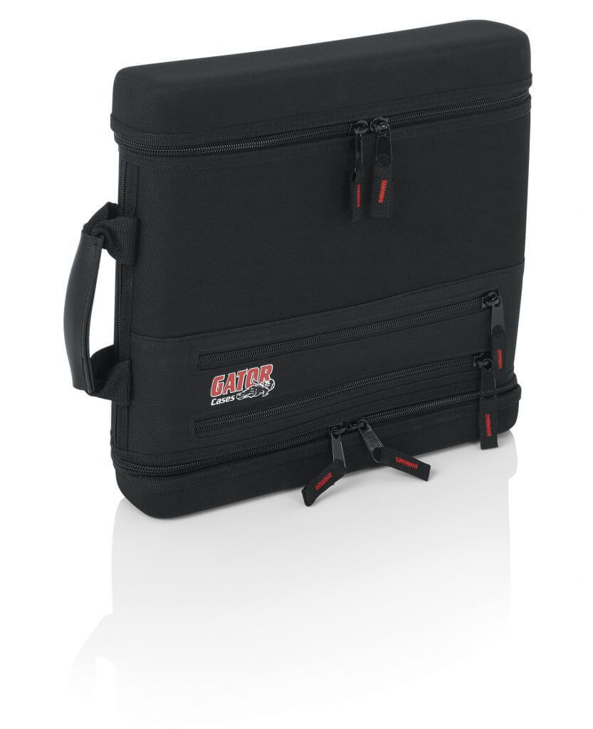 - Storage for receiver, handheld microphone, power supply, belt pack transmitter, and lapel microphones