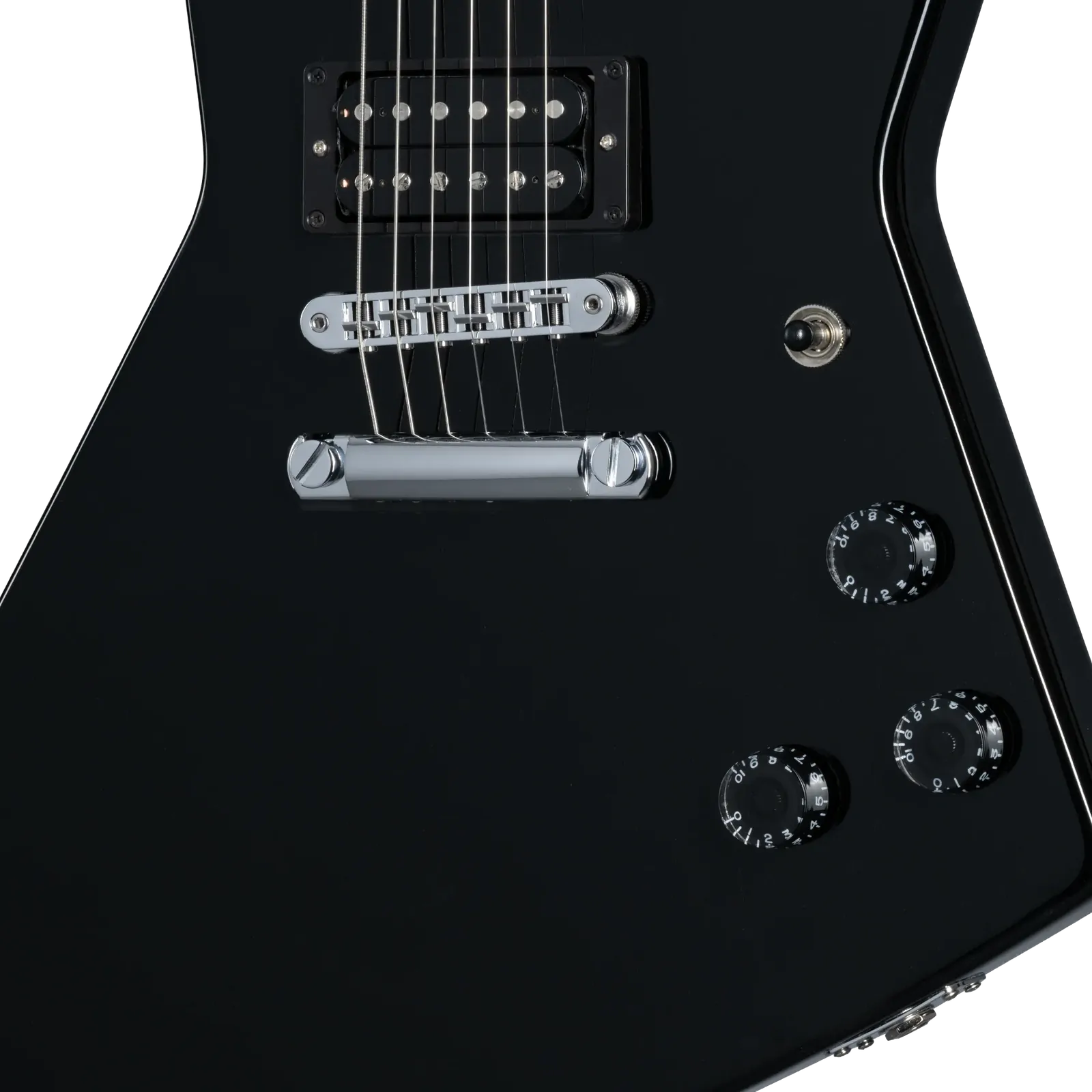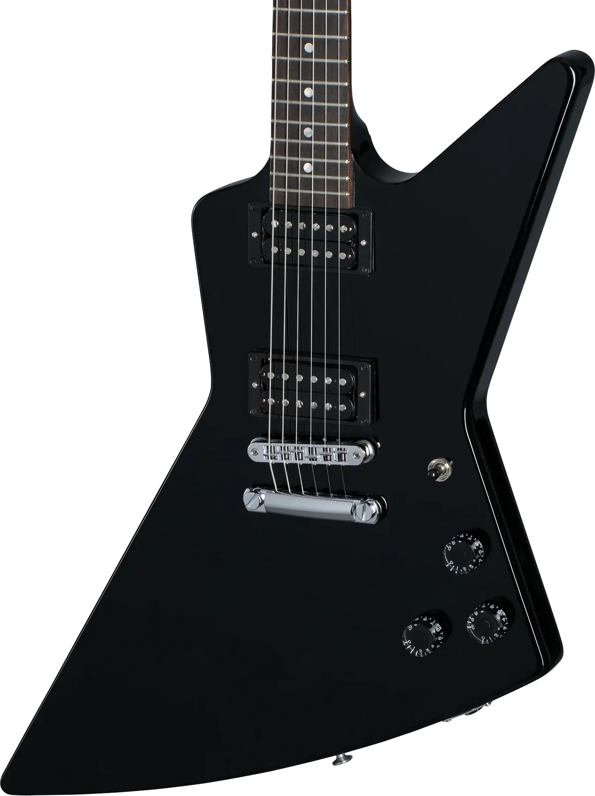 The Explorer 80s features a lightning-fast mahogany neck with a SlimTaper™ profile. The neck is topped with a rosewood fretboard that features 22 medium jumbo frets and understated acrylic dot inlays. The Explorer headstock is equipped with Grover® Mini Rotomatic® tuners and a Graph Tech® nut to ensure the tuning stays dialed in. The other ends of the strings pass over an aluminum Nashville Tune-O-Matic™ bridge and are anchored with an aluminum Stop Bar tailpiece. The iconically shaped mahogany body is outfitted with 80s Tribute humbucker pickups that accurately recreate the fat-toned sound and rich sustain of the Explorer models from the 80s era. The pickups are hand-wired to individual volume controls, while a master tone control with an Orange Drop® capacitor provides even more tonal adjustability; the controls are capped with black Speed knobs for great functionality and a classic aesthetic. There is no pickguard, which helps to give the Explorer 80s a sleek and slightly menacing appearance. If you’re into retro-futuristic guitars, the Explorer 80s brings back some of the era’s edge and attitude. It comes packed in a Gibson hardshell case and is ready to join you wherever your music takes you.