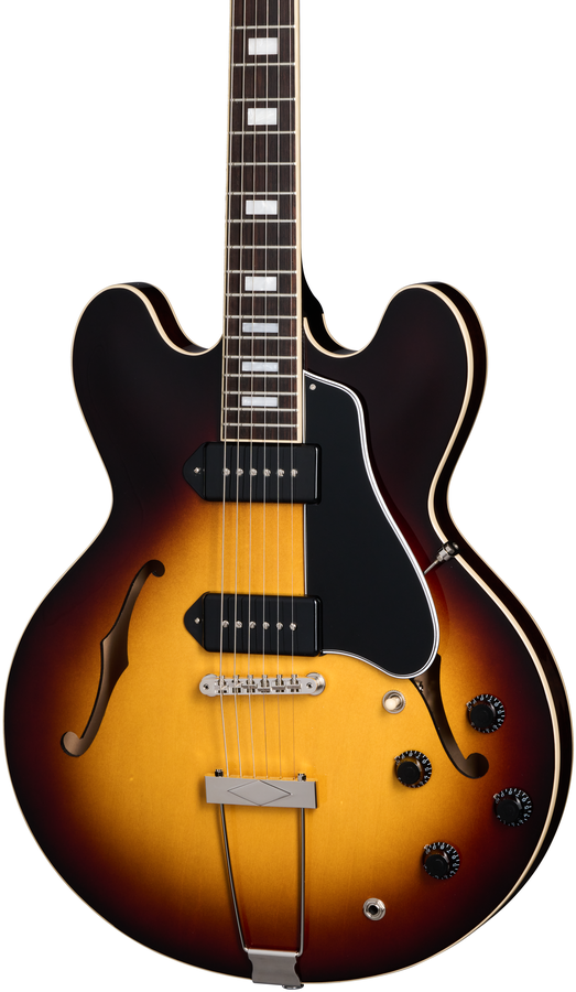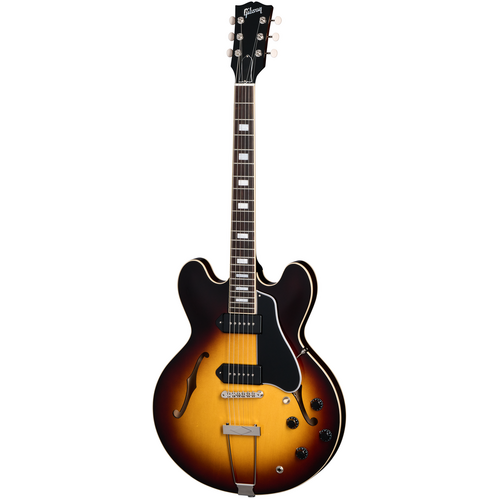 The Gibson ES-330 has garnered a reputation for its distinctive sound, comfortable playability, and classic aesthetics, making it a favourite among musicians seeking a versatile, vintage-inspired ES™-style electric guitar. A close cousin of the Epiphone Casino™, the ES-330 shares a similar fully hollow thin line body made of 3-ply maple/poplar/maple and is supremely resonant and warm-sounding due to the hollow body, trapeze tailpiece, and deep-set neck that creates an optimized bridge location. The mahogany neck has a comfortable Rounded “C” profile and features a rosewood fretboard with acrylic small block inlays and medium jumbo frets. The ES-330 is powered by a pair of Dogear P-90 pickups that are hand-wired to 500k potentiometers and Orange Drop® capacitors for bright and clear clean tones and wonderfully nasty, snarling tones when overdriven. The ES-330 is not only a great-sounding electric guitar for stage and studio use but is also equally enjoyable as a song writing tool and is considered by many to be the ideal “couch guitar” since it can be enjoyed equally well when unplugged and played acoustically. Gibson are proud to bring the ES-330 back to their catalogue so players can once again have the opportunity to discover the magic of this distinctive-sounding, vintage-inspired classic.