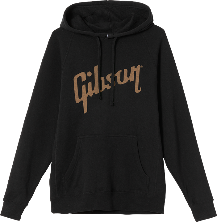 Classic black unisex hoodie featuring the historic Gibson logo in gold across the chest - found on all Gibson instruments since the late 1940s.