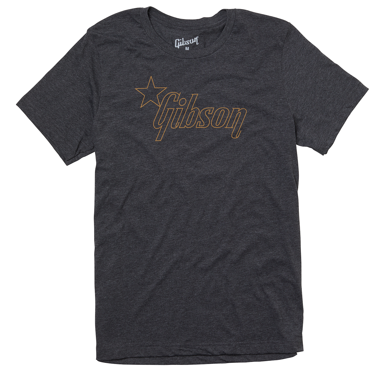 Charcoal grey tee featuring the iconic Gibson Star logo used on nearly all Gibson products from the early 1950s-1960s including string boxes, guitar cases, and dealer signs.