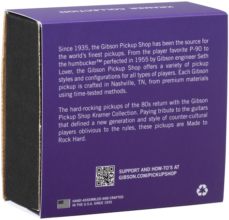 The hard-rocking pickups of the 80s return with the Gibson Pickup Shop Kramer Collection. Paying tribute to the guitars that defined a new generation and style of counter-cultural players oblivious to the rules, these pickups are Made to Rock Hard. The 'Eruption' pickups are designed for those who demand high output and maximum articulation for shredding and tapping.