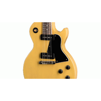 The Les Paul Special returns to the classic design that made it relevant, played and loved shaping sound across generations and genres of music. It pays tribute to Gibson's Golden Era of innovation and brings authenticity back to life. Originally introduced in 1955, the Les Paul Special has been embraced by musicians for over 60 years. It is based on the Les Paul Junior with a slab mahogany body, fat 50s-style mahogany neck, rosewood fingerboard, wraparound bridge, an additional rhythm P-90 pickup, binding on the neck and additional controls for the rhythm pickup and the 3-way toggle switch. Available in the always classic TV Yellow and Vintage Cherry.