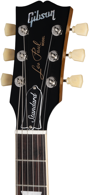 The new Les Paul Standard 50's Plain Top returns to the classic design that made it relevant, played, and loved – shaping sound across generations and genres of music. It pays tribute to Gibson's Golden Era of innovation and brings authenticity back to life. The Les Paul Standard 50s Plain Top has a solid mahogany body with a plain maple top and a rounded 50s-style mahogany neck with a rosewood fingerboard and trapezoid inlays. It's equipped with an ABR-1, the classic-style Tune-O-Matic bridge, an aluminum Stop Bar tailpiece, Vintage Deluxe tuners with Keystone buttons, and aged gold Top Hat knobs. The calibrated Burstbucker 1 (neck) and Burstbucker 2 (bridge) pickups are loaded with Alnico 2 magnets, audio taper potentiometers, and Orange Drop capacitors. Now available in vivid custom colors, a hardshell case completes the package.