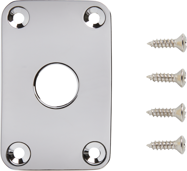 This Gibson Explorer Jack Plate in Chrome is a traditional square jack plate and genuine Gibson replacement part. It is the right size, shape, and color for replacing or upgrading existing hardware, or for custom builds.