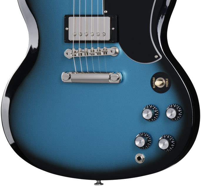 The SG Standard '61 returns to the classic design that made it relevant, played, and loved -- shaping sound across generations and genres of music. And now, it's available in attention-grabbing custom colours! In 1961, the Les P aul ™ model was put on hiatus, and an all-new design evolved into what is today known as the SG™ or "solid guitar." The Gibson SG Standard '61 retains the styling of the original featuring a SlimTaper ™ mahogany neck and a bound rosewood fingerboard. The mahogany body features deeply sculpted body scarfing, a 5-ply teardrop pickguard, and a 22nd-fret neck joint. The nickel-plated hardware includes a classic-style Tune-O-Matic ™ bridge and Keystone tuners. The pickups are 60s Burstbucker ™ humbuckers ™ for a classic voice with added power and top end. Controls feature audio taper potentiometers and Orange Drop® capacitors. A hard-shell case is also included.