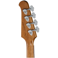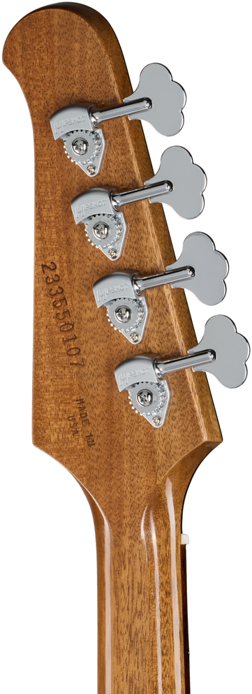 Now, Gibson is proud to bring a new version of the legendary Thunderbird to the Gibson lineup. The new Thunderbird Bass features a solid mahogany body in the original reverse body shape. The body retains the appearance of the original neck-through design, featuring a raised section running through the middle. However, this new Thunderbird boasts a glued-in, set mahogany neck with a fast-playing SlimTaper™ profile, making it more comfortable and accessible than ever. Additionally, the headstock on the Thunderbird Bass features the popular Non-Reverse headstock style, making tuning up quick and intuitive. Other modern updates include Hipshot® Ultralite® Mini Clover tuning machines, which offer precise tuning and improved balance, along with a Hipshot Supertone bridge that delivers full intonation and adjustable action height.